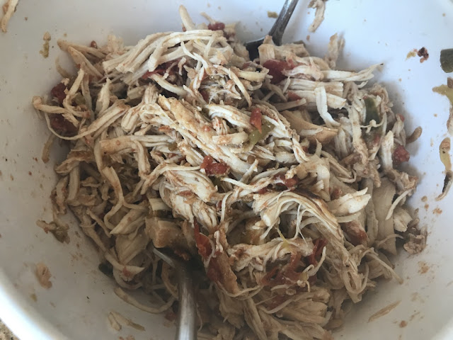 Take out the chicken breasts & shred them in a bowl: